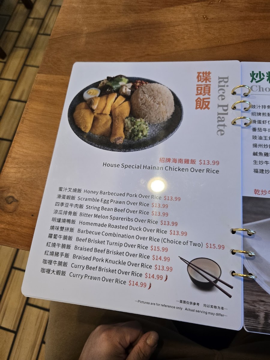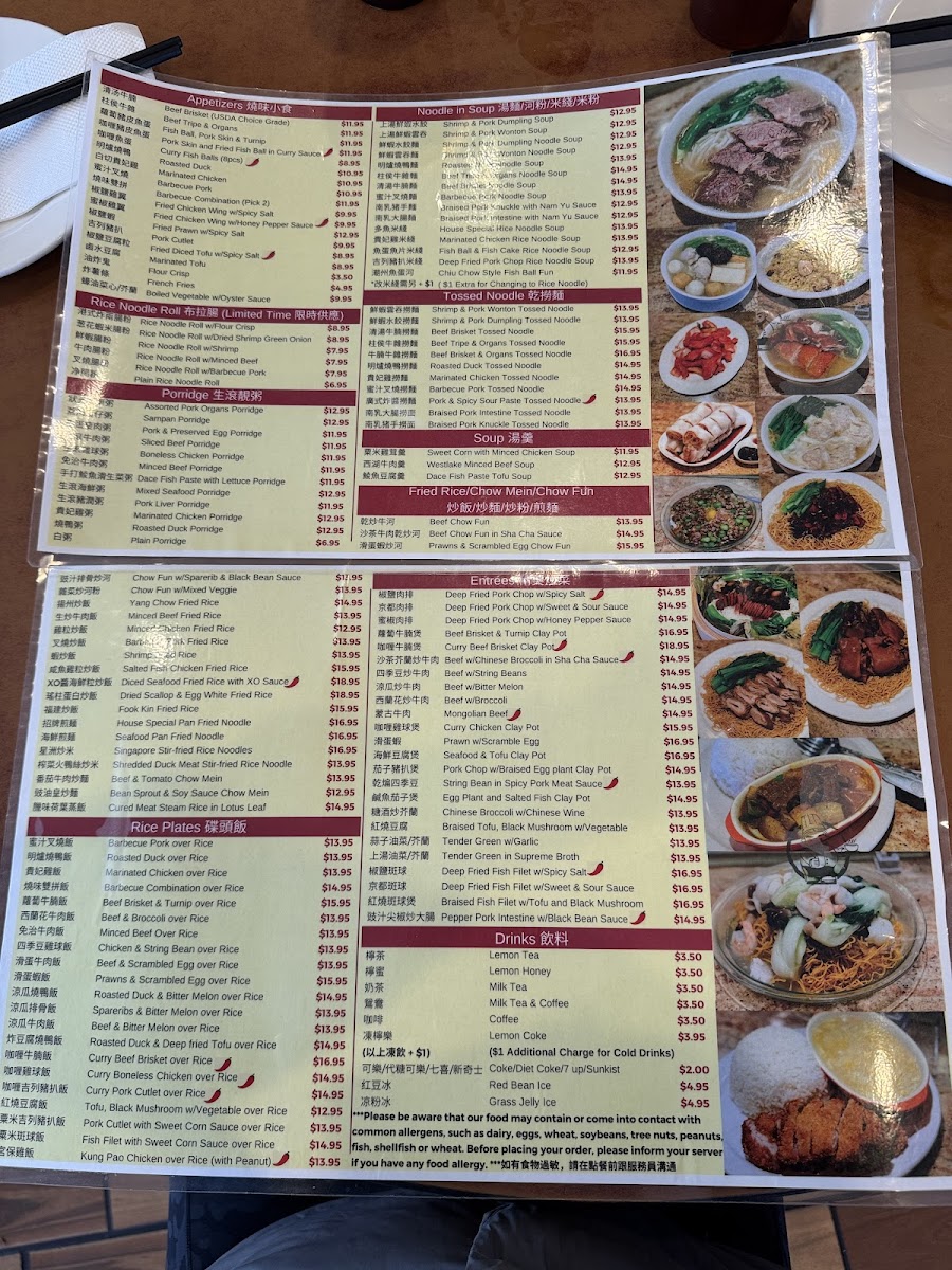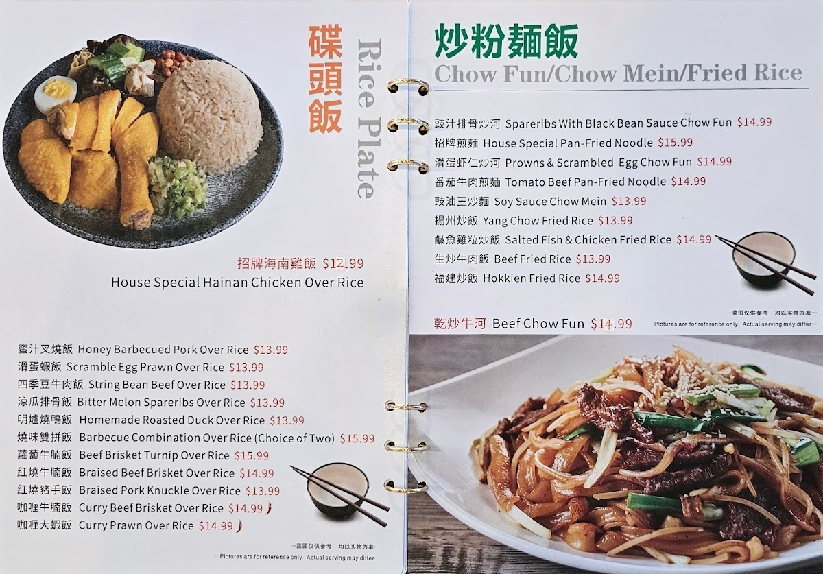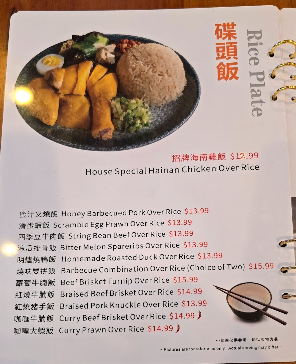 For those seeking a heartier option, don’t miss the House Special Hainan Chicken Over Rice, where the succulent chicken is served on a bed of flavorful, aromatic rice, accompanied by a zesty dipping sauce that adds a vibrant kick. The Homemade Roasted Duck Over Rice is another standout, featuring tender duck that is perfectly crispy on the outside and succulent within. And if you’re a fan of fried delights, the Salt Pepper Pork Chop will not disappoint, delivering a wonderful crunch with just the right amount of seasoning.